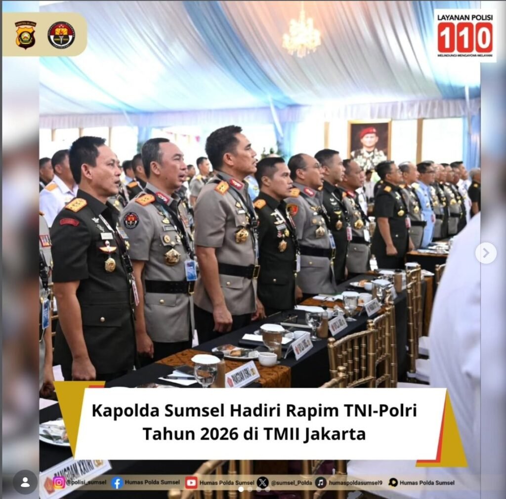 JAKARTA – Kapolda Sumatera Selatan Irjen Pol Dr. Sandi Nugroho, S.I.K., S.H., M.Hum. menghadiri Rapat Pimpinan TNI-Polri Tahun 2026 yang digelar di Istana Merdeka, Jakarta Pusat, Senin (09/02/2026). Kegiatan strategis ini dihadiri langsung oleh Presiden Republik Indonesia beserta jajaran Menteri Kabinet Merah Putih untuk menyelaraskan visi dan misi pengamanan nasional.